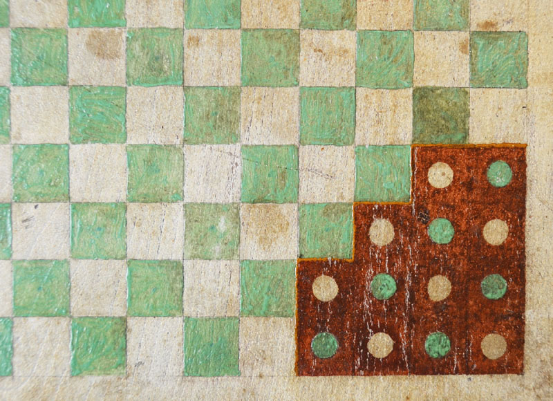 A rare painted game board with a modernistic Paul Klee-like composition.