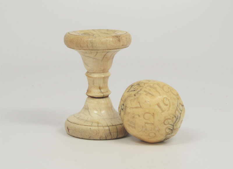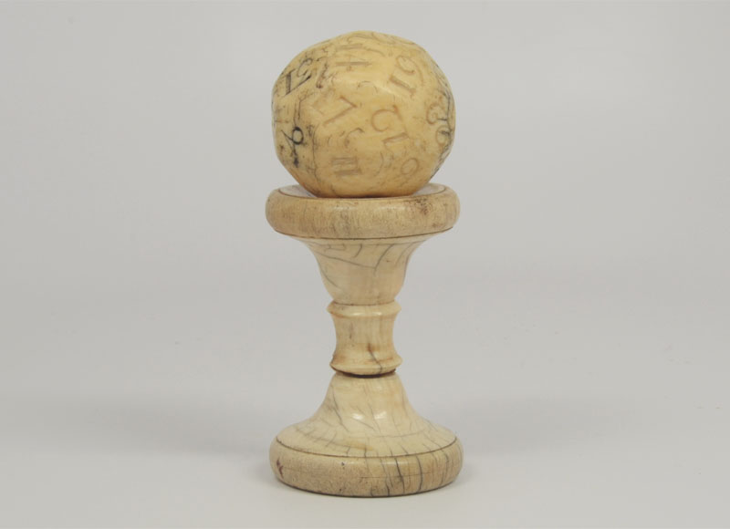 Carved from marine ivory each of the thirty-two faceted sides are numbered. Only a few such examples are known - none with a stand.