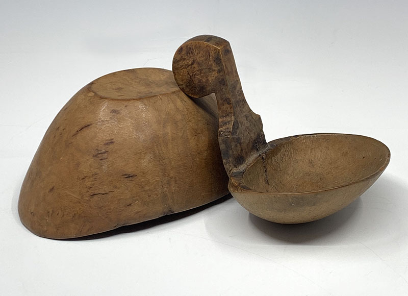 Condition: Excellent with expected wear from age and use. The ladle has a natural, shallow, fissure in the bowl leading to the stem.